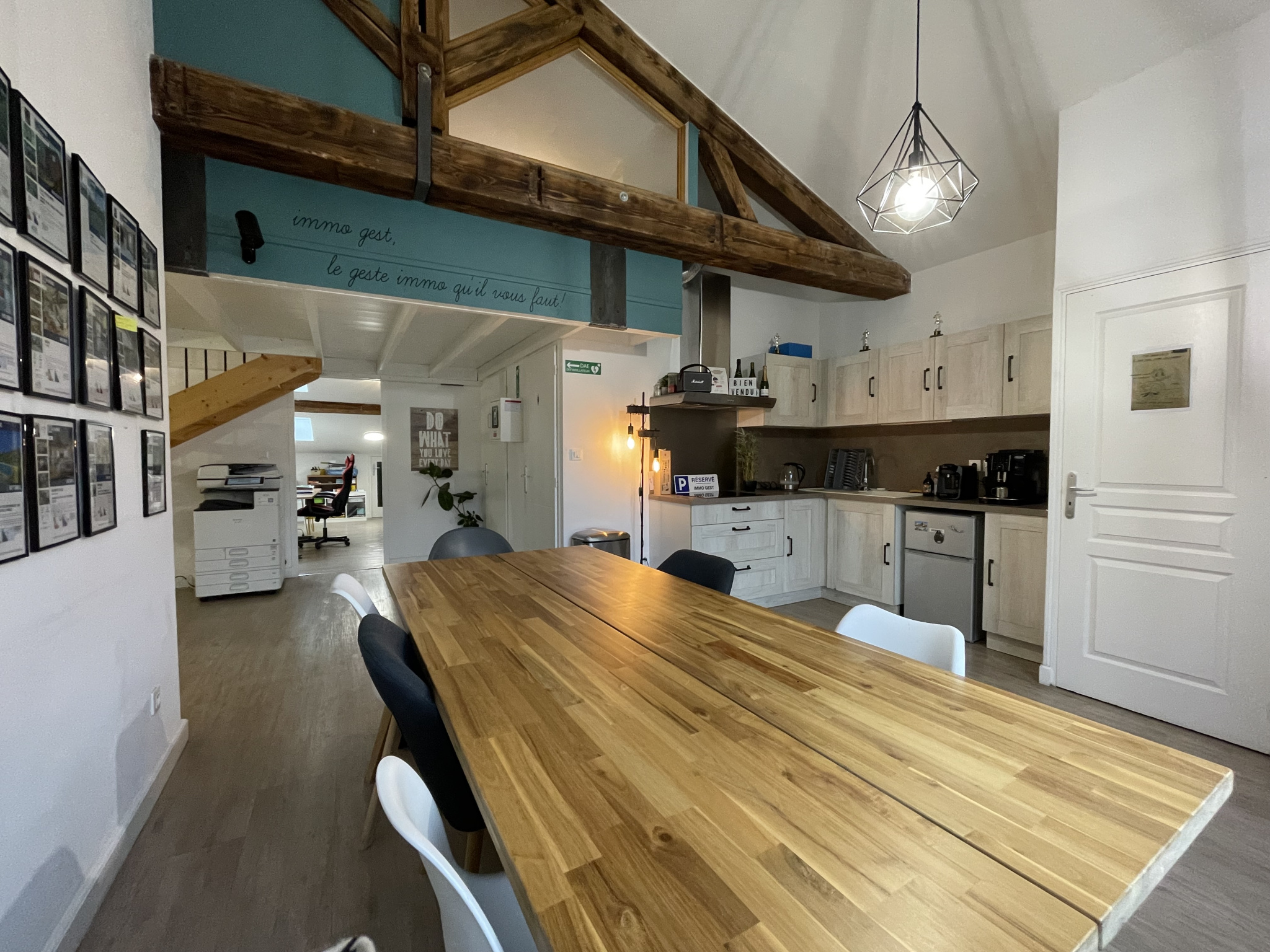 Il se compose d’une pièce principale d’accueil avec espace cuisine, de deux bureaux indépendants, d’une salle de réunion, de deux WC et d’une arrière-salle pouvant servir d’espace d’archives.