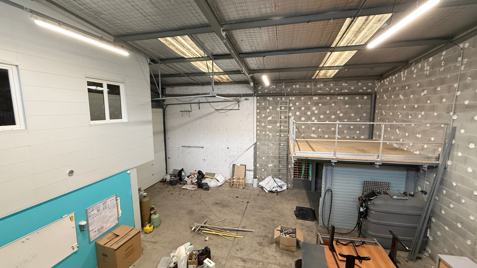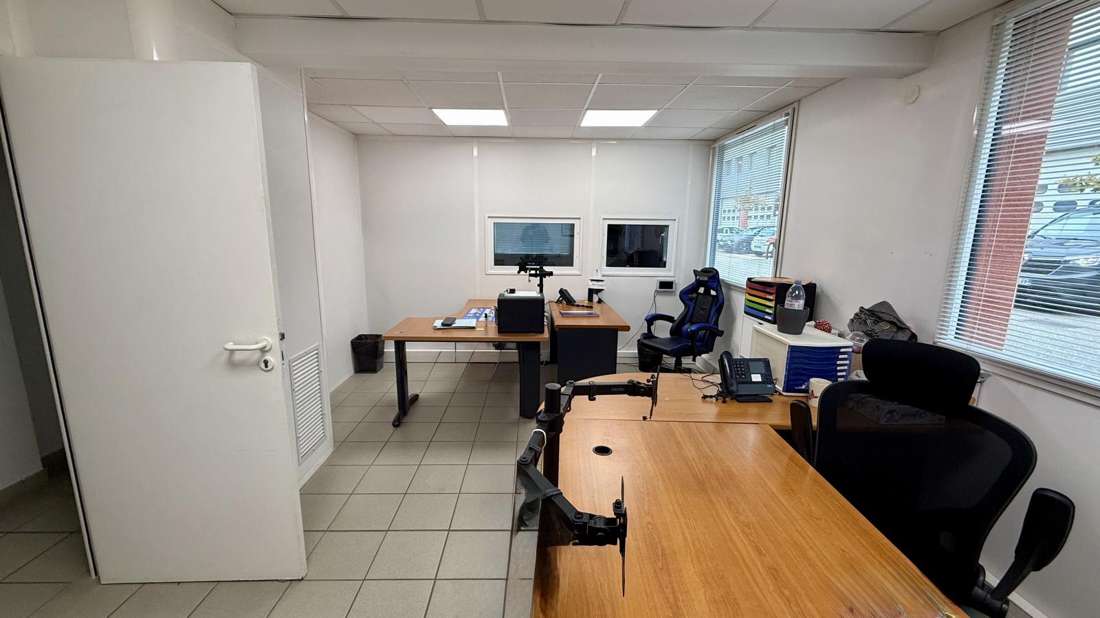 Lot avec une porte sectionnelle, Dalle Béton, deux zones de bureaux.