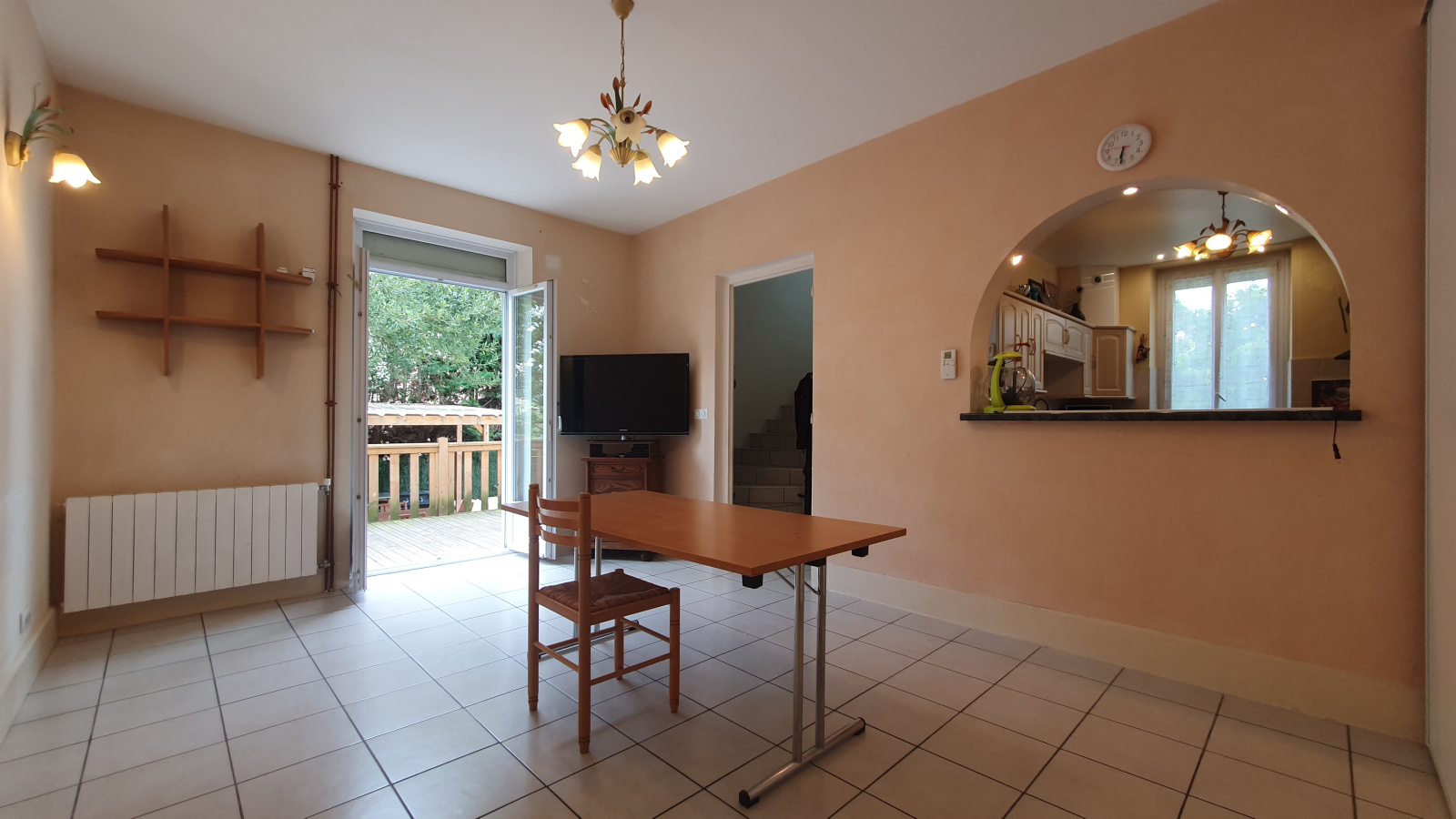 La maison se compose d'un salon de 20 m² ouvrant sur une belle terrasse de 11 m²,