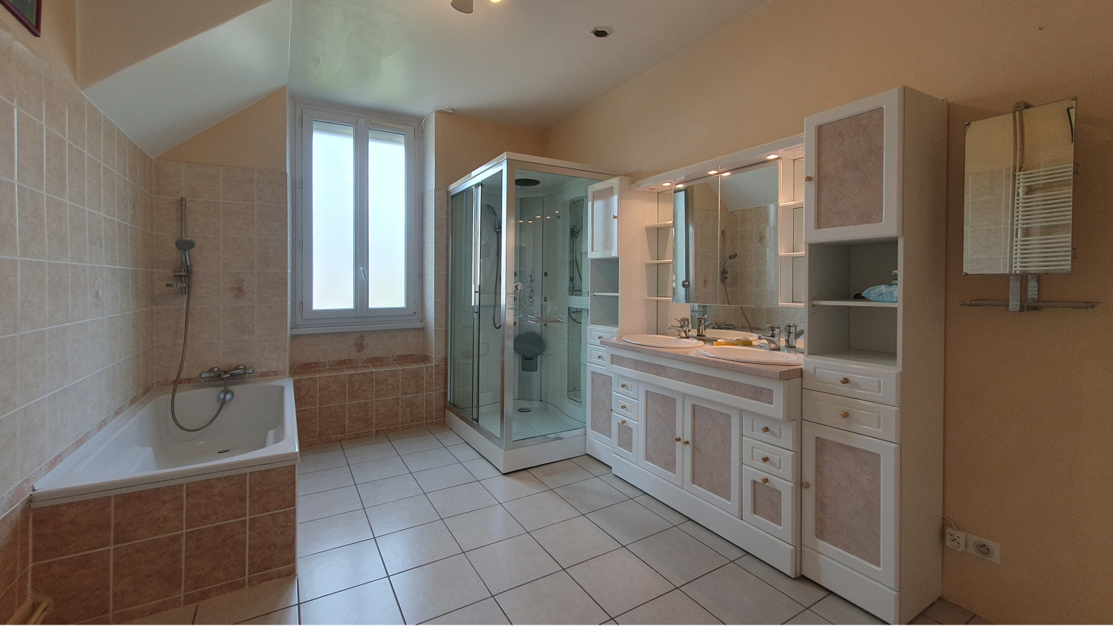 d’une cuisine équipée, de 3 chambres et d’une grande salle de bain avec douche et