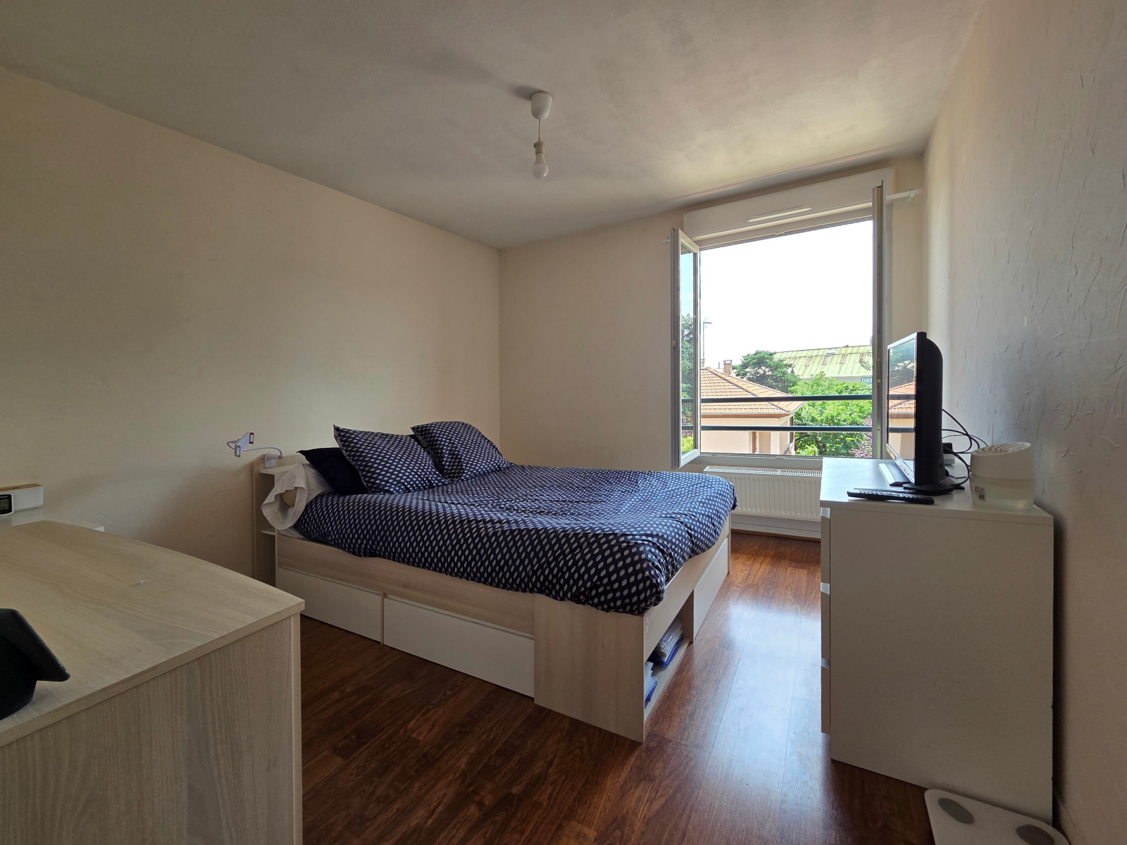 L'appartement se compose d’une belle pièce à vivre, d'une cuisine semi-équipée, d'une grande chambre et d'une salle de bain et WC séparé.