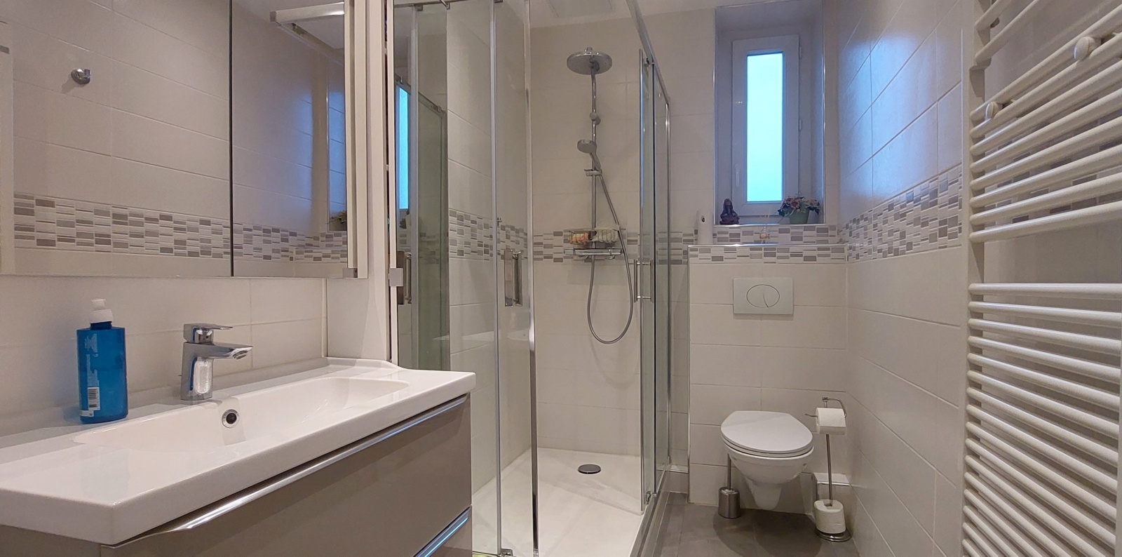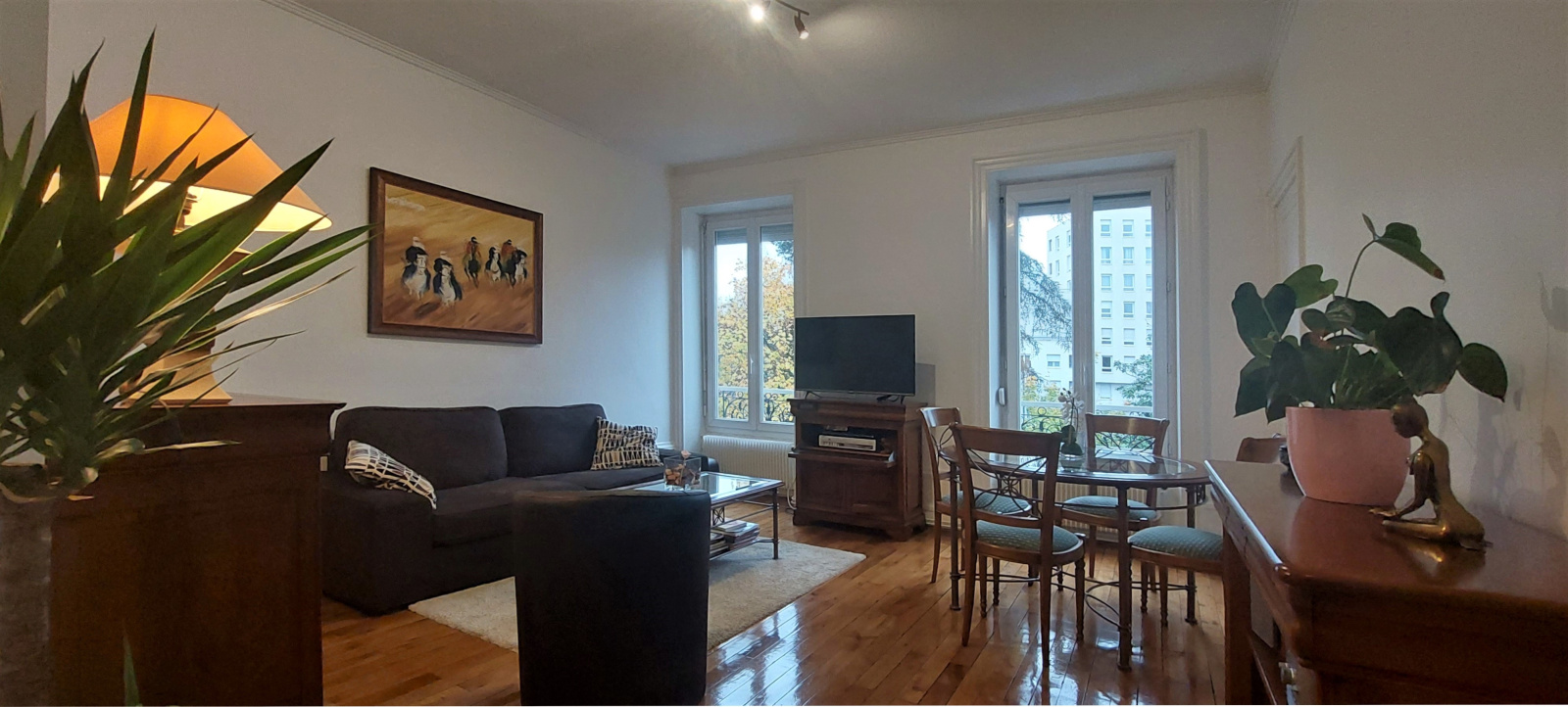Cet appartement traversant Est-Ouest a été entièrement rénové et dispose d’une cave.