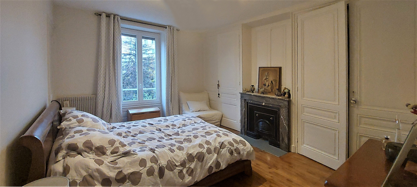 L’appartement dispose d’une grande pièce à vivre de 20 m², d’une cuisine équipée de 11 m², d’une grande chambre de 16.75 m², d’une salle d’eau et WC ainsi qu’un dressing séparé de plus de 5 m².