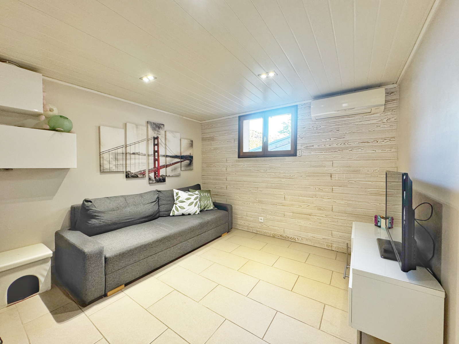 Un garage de 19 m² ainsi qu’un grand local technique et un cabanon (idéal pour le rangement du bois) complètent ce bien.
