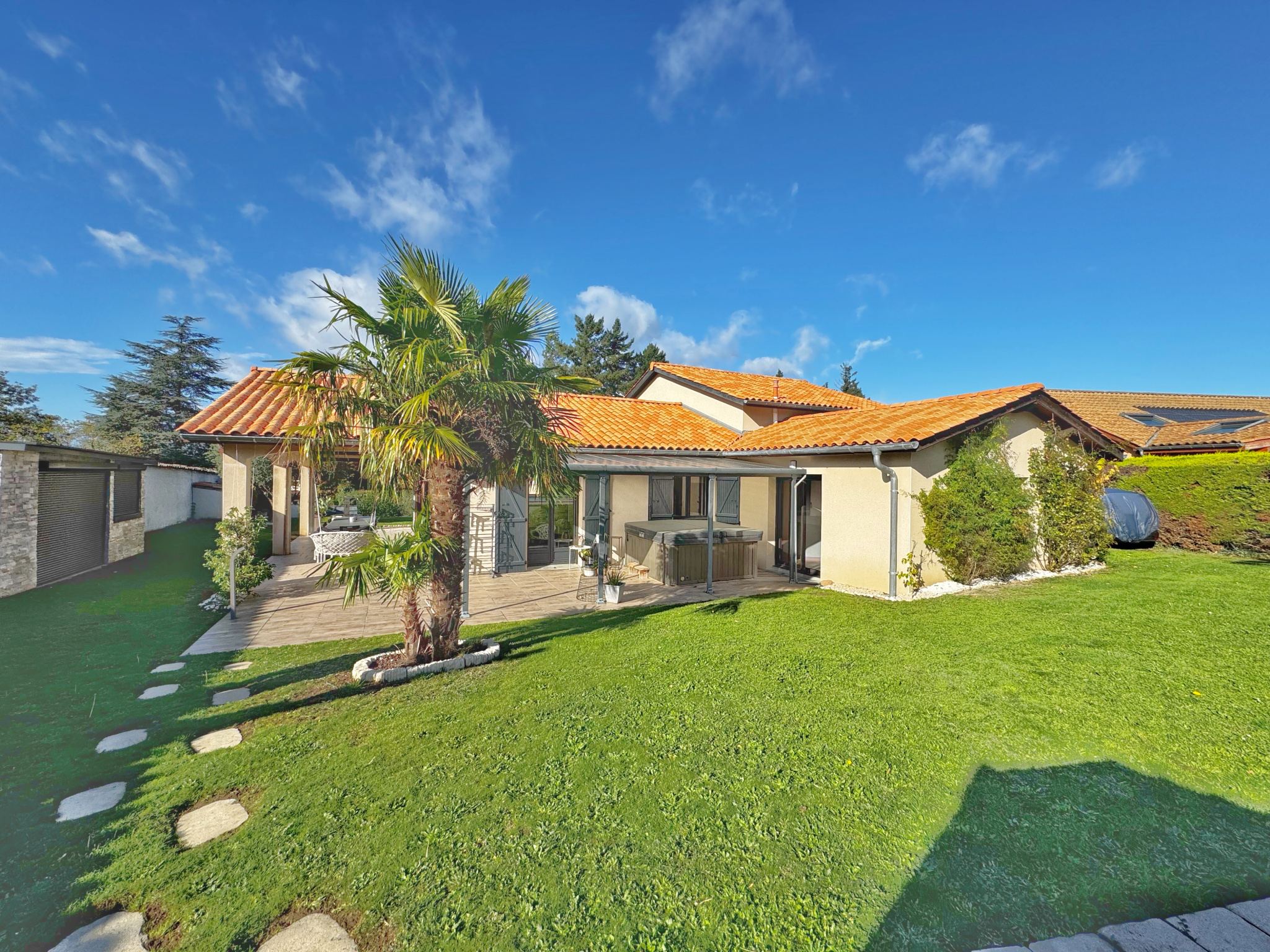 Cette villa pleine de charme implantée dans un environnement calme et boisé propose un extérieur complet et aménagé avec goût. Vous y trouverez sa cuisine d’été, sa grande piscine, son jacuzzi et ses 2 terrasses idéalement exposées.