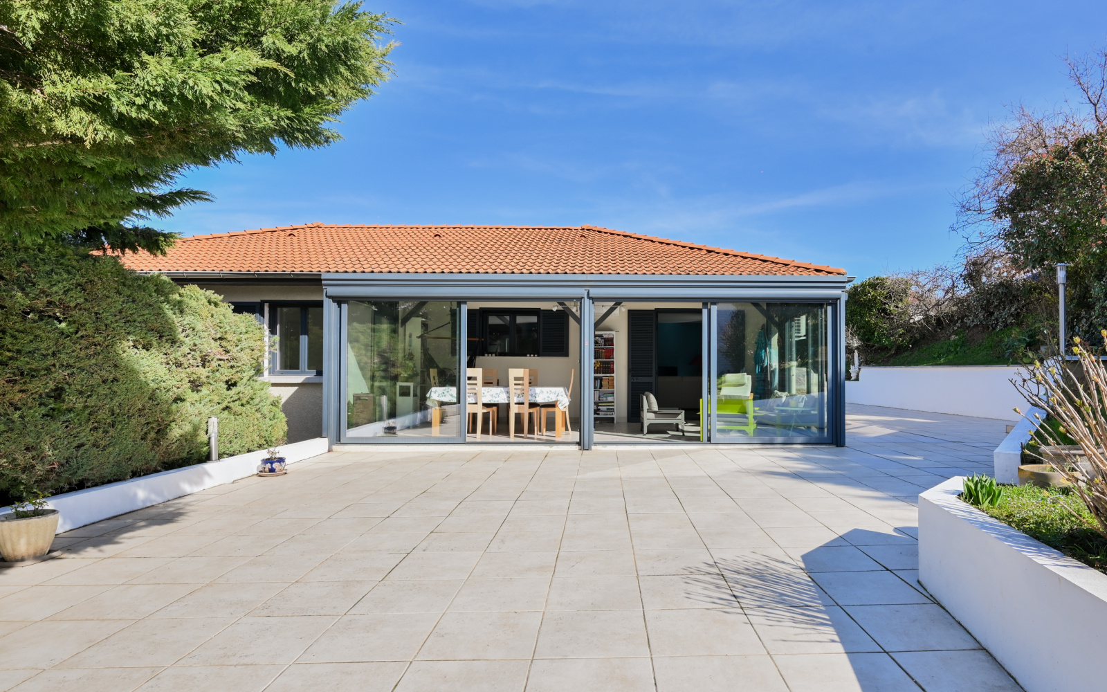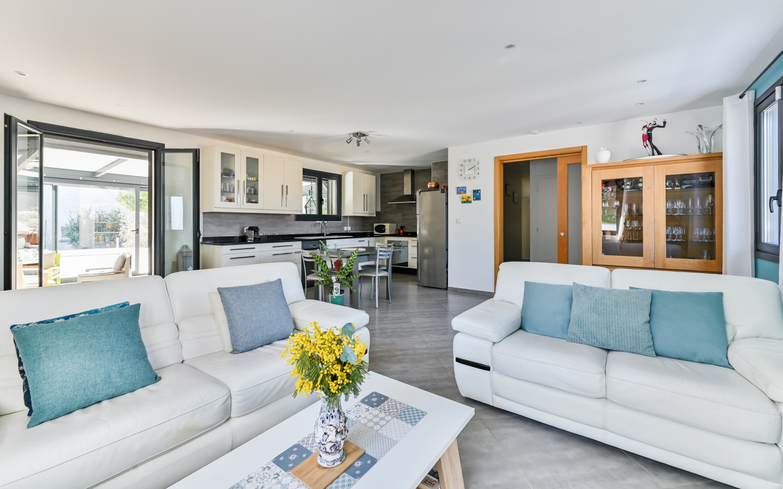 La maison se compose d'une pièce à vivre de 40 m² avec une cuisine équipée moderne ouvrant sur une magnifique veranda, de 3 chambres et d’une grande salle d’eau.