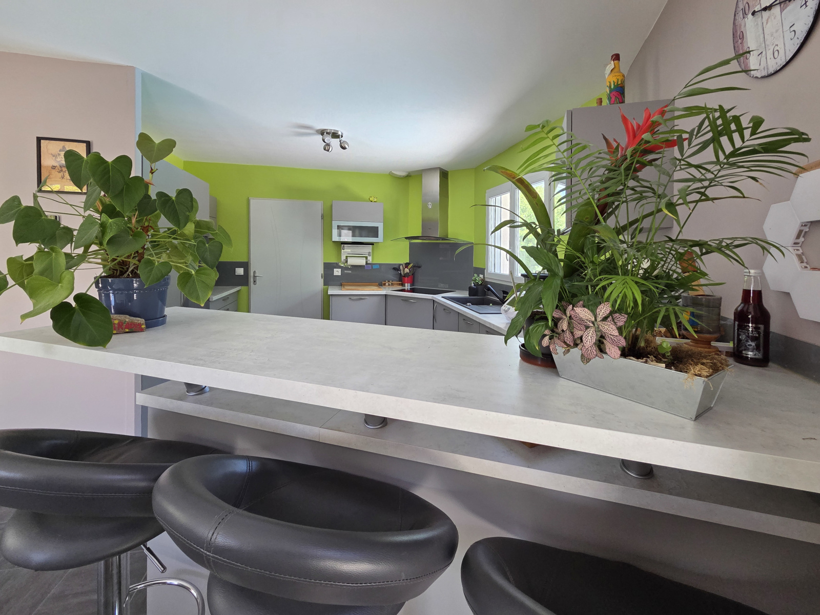 La maison récente de 2015 se compose d'une spacieuse pièce à vivre de 41 m² avec sa cuisine équipée et son cellier, de 3 chambres, d’une salle d’eau et WC séparés.