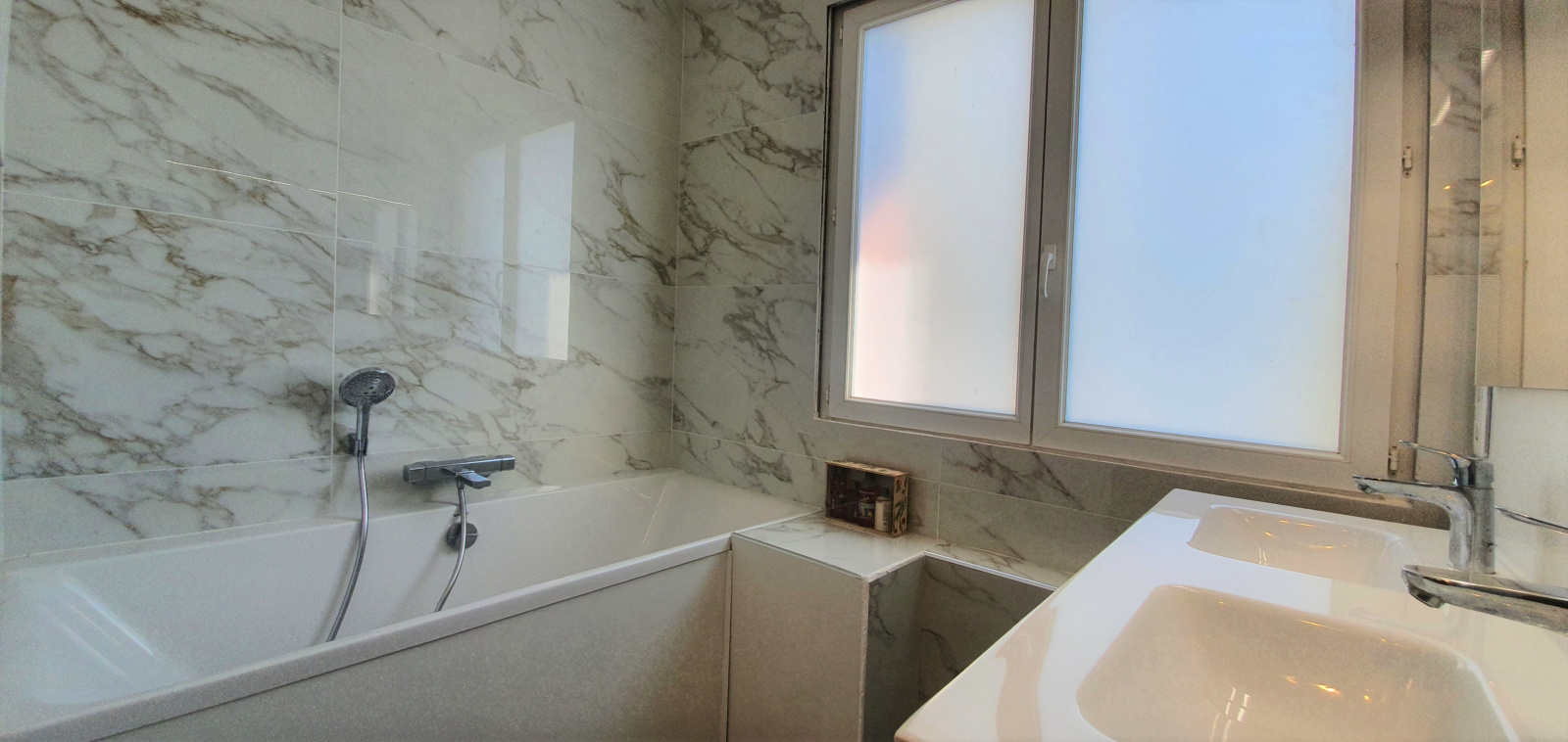 Elle se compose d’une pièce à vivre de 54 m² avec une cuisine équipée ouvrant sur une belle terrasse avec vue, d’une grande chambre avec rangements, d’une salle de bain moderne avec douche italienne + baignoire réalisée avec des matériaux de qualité.