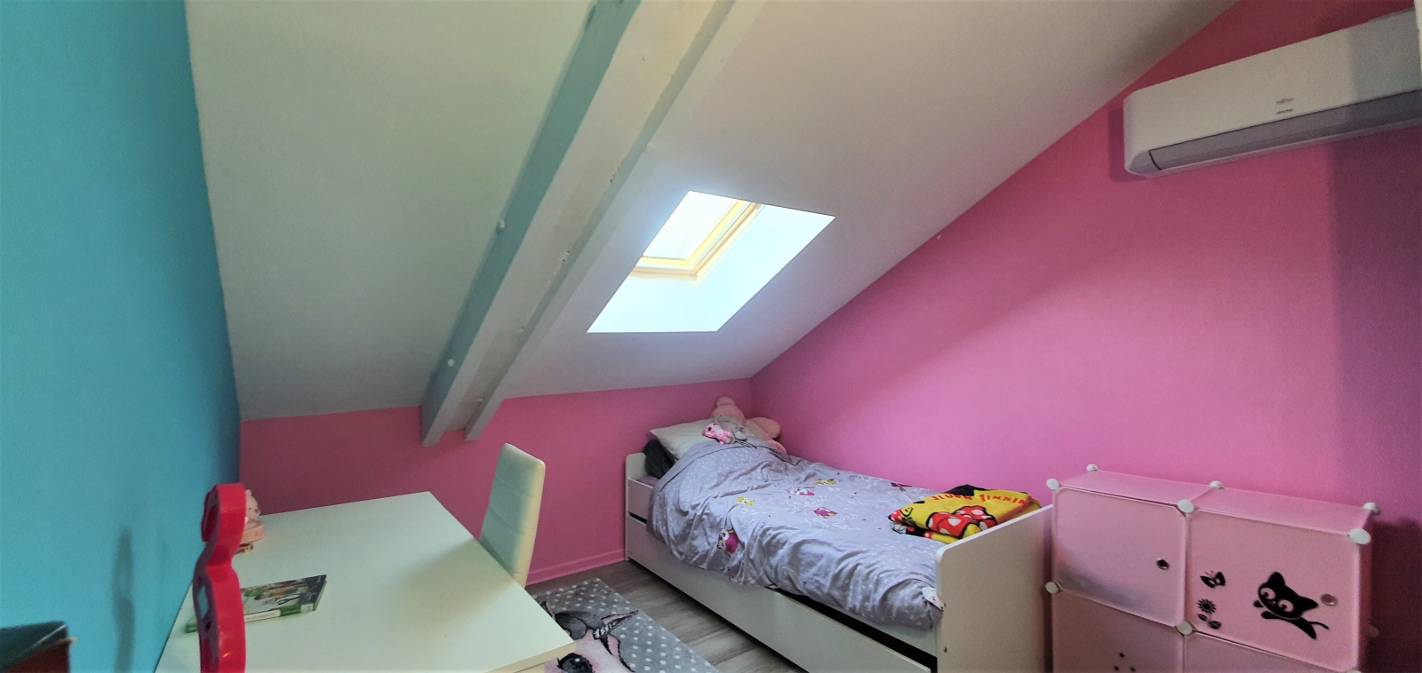 A l’étage vous trouverez deux chambres de 14 m² et 10 m² + WC et point d’eau.